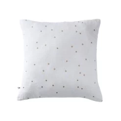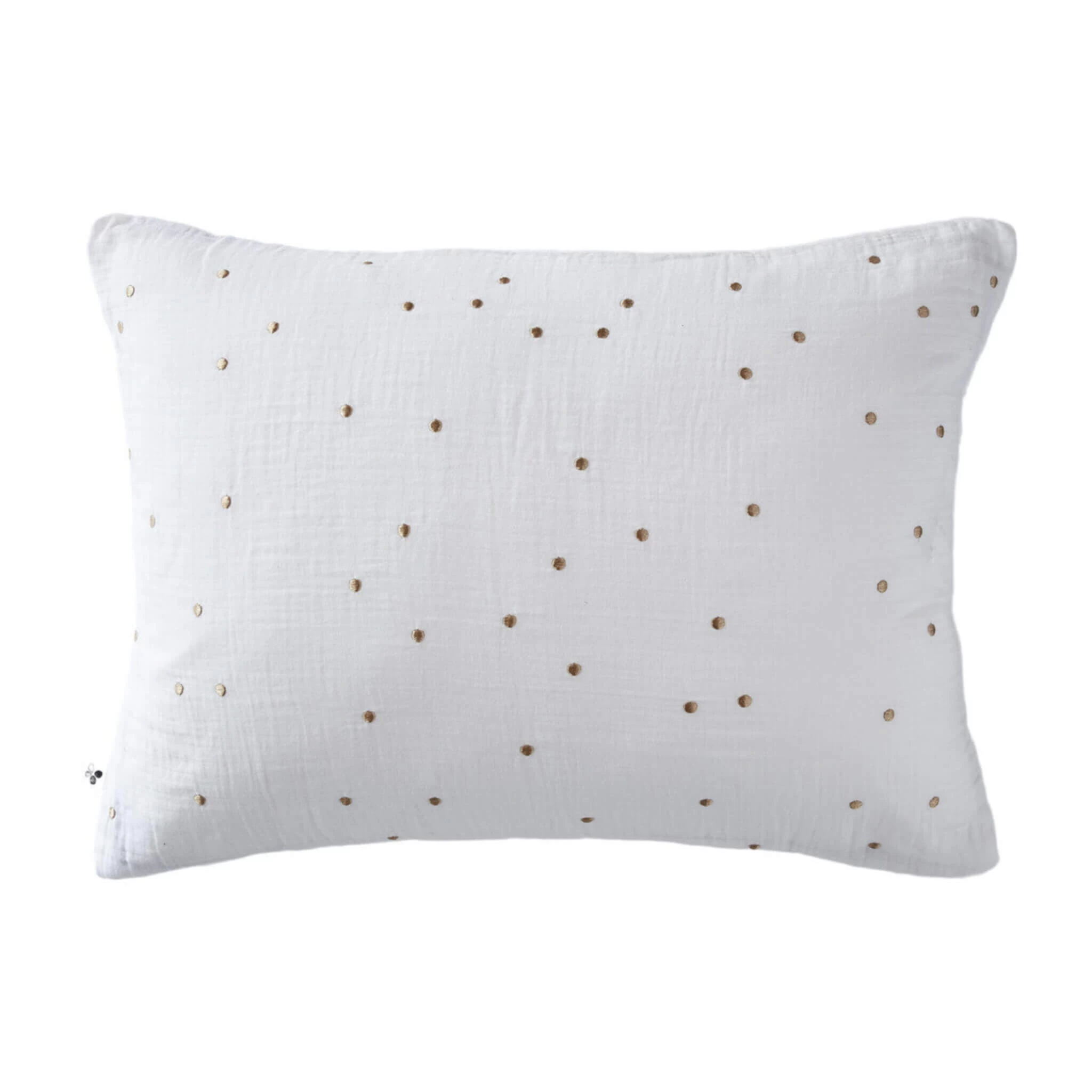 Taie d’oreiller à pois brodés double gaze de coton blanc