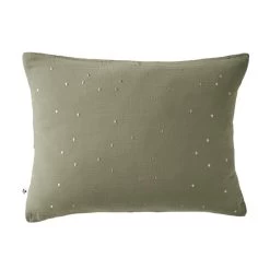 Taie d’oreiller à pois brodés double gaze de coton kaki