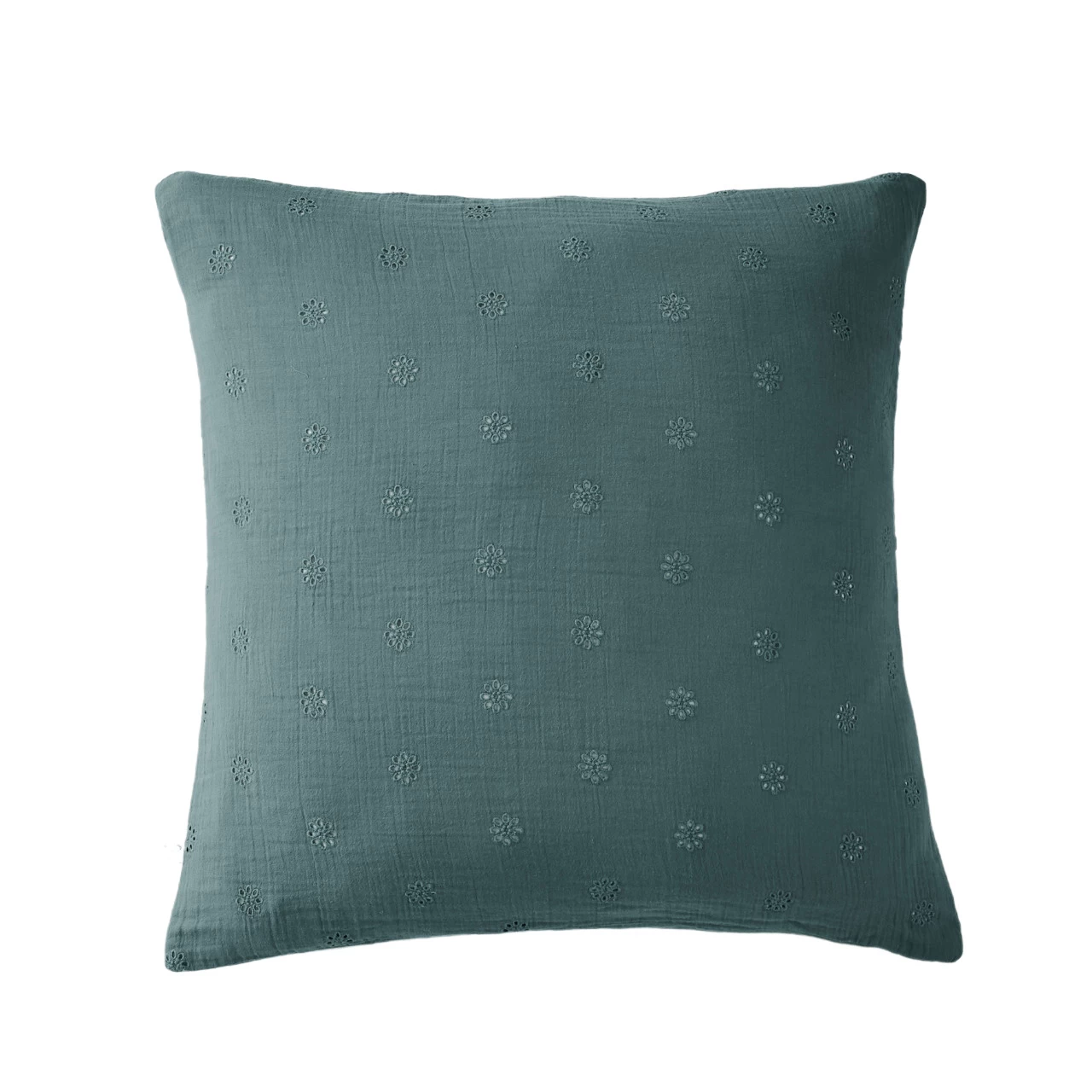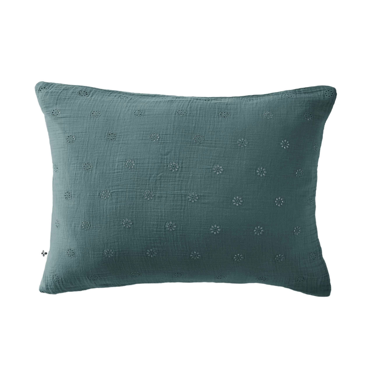 Taie d’oreiller brodĂ©e double gaze de coton bleu canard