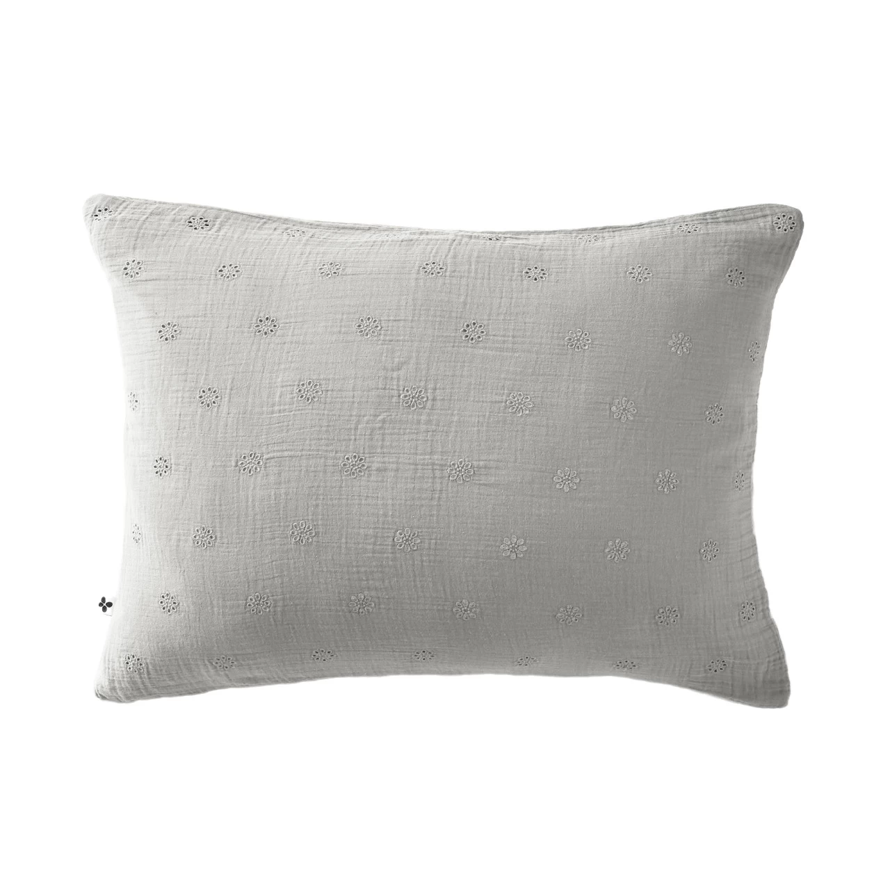 Taie d’oreiller brodĂ©e double gaze de coton gris