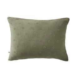 Taie d’oreiller brodĂ©e double gaze de coton kaki