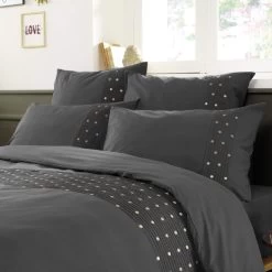 Taie d’oreiller brodĂ©e plis religieuses anthracite