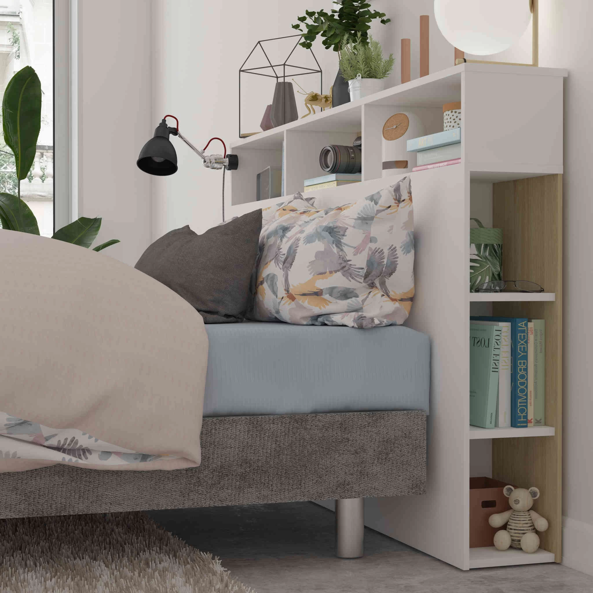 En plus de son aspect pratique, cette tĂȘte de lit ajoute une touche esthĂ©tique Ă votre chambre. Les niches de rangement crĂ©ent un effet visuel intĂ©ressant, permettant de mettre en valeur des objets dĂ©coratifs ou de crĂ©er un agencement unique en jouant avec les couleurs et les textures.