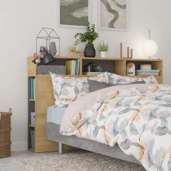 Cette tĂȘte de lit offre Ă la fois une solution pratique et esthĂ©tique pour votre chambre Ă coucher.