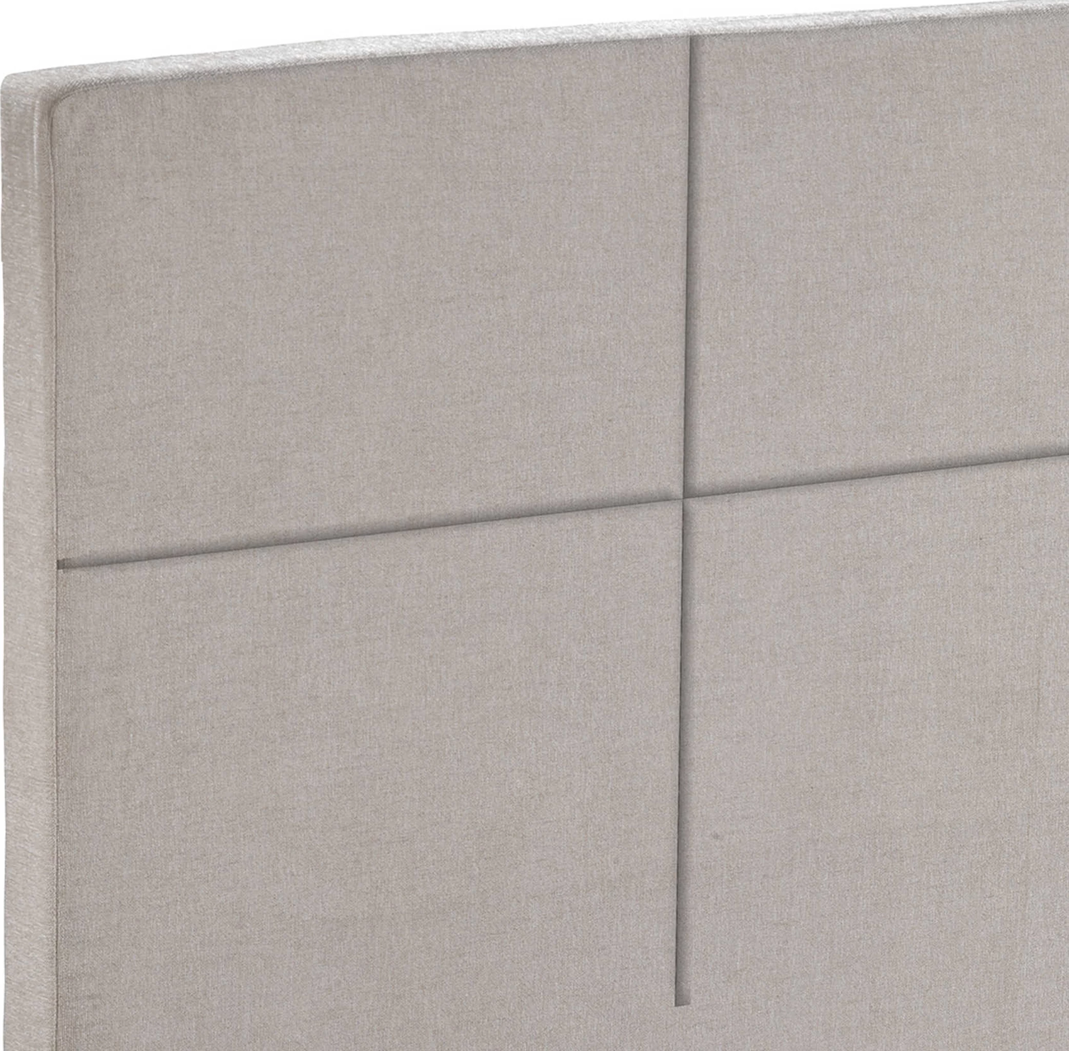 d’épaisseur. Son tissu chenillé couleur lin est texturé