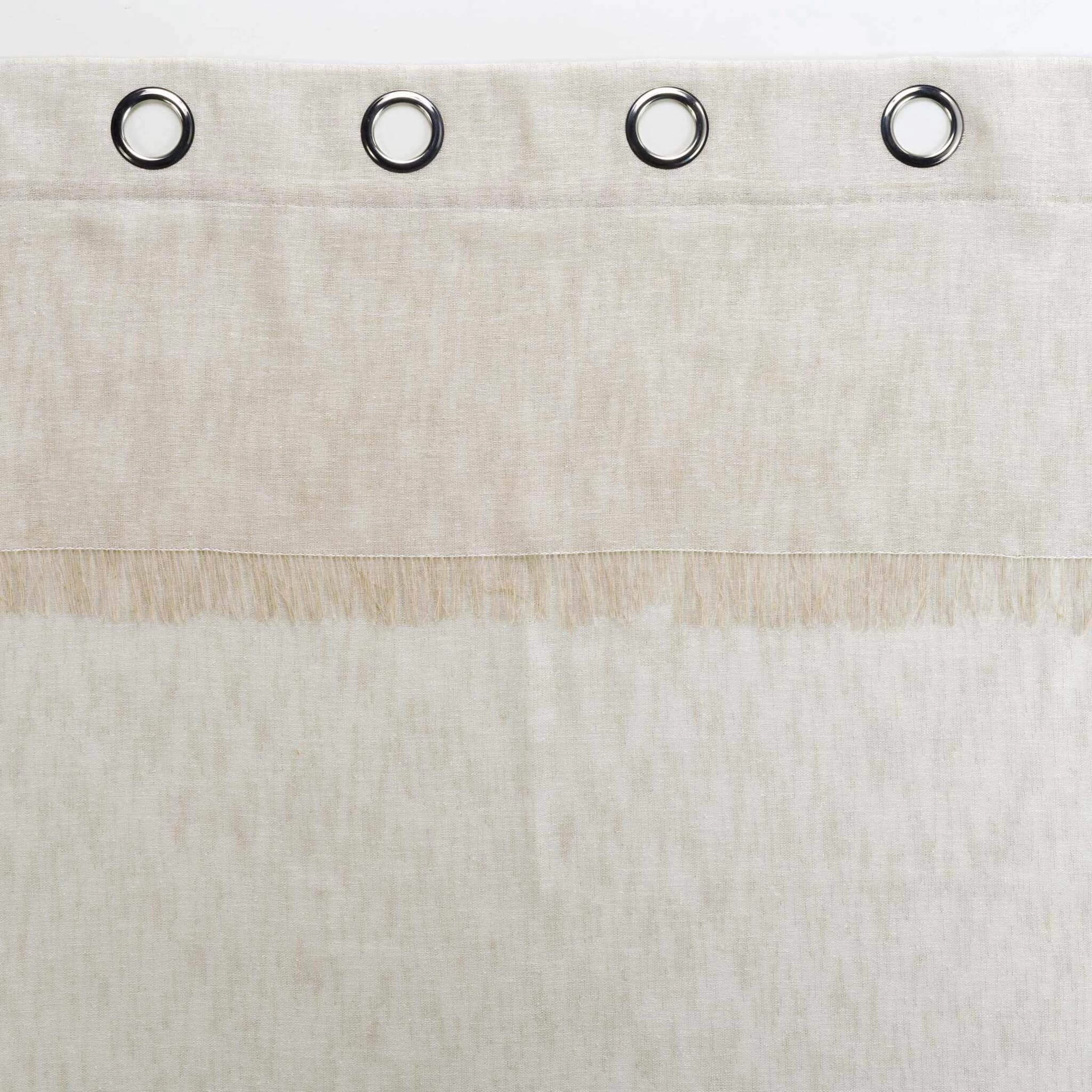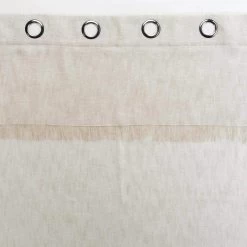 Concernant son design, vous retrouverez une surface unie de couleur lin avec une finition à oeillets métalliques de diamètre 4 cm (à l’intérieur) et 6 cm (à l’extérieur), ce qui facilitera l’installation sur votre tringle.